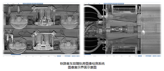 該系統(tǒng)是鐵路車輛運(yùn)行安全監(jiān)控系統(tǒng)的重要組成部分,利用軌旁安裝的高速相機(jī),檢測(cè)運(yùn)行客車走行部、轉(zhuǎn)向架、制動(dòng)部件、車端連接及車體下部懸吊件等可視部位圖像,實(shí)時(shí)傳輸至室內(nèi)監(jiān)測(cè)終端進(jìn)行分析,并利用人工檢測(cè)發(fā)現(xiàn)運(yùn)行車輛異常情況并報(bào)警。